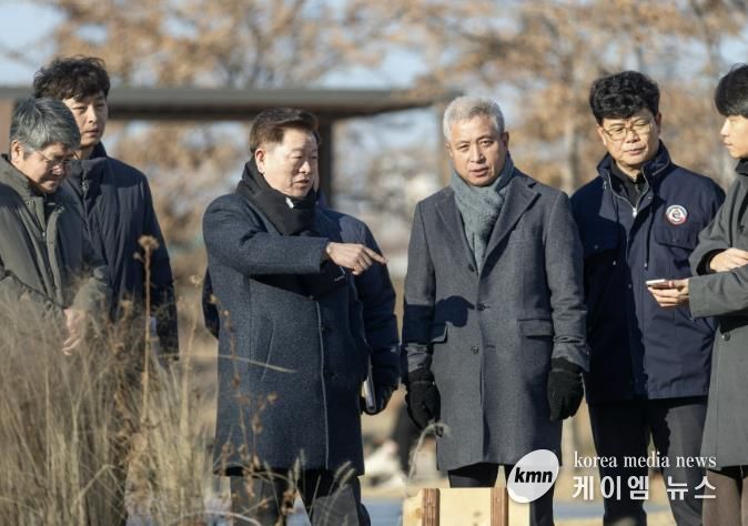 박승원 광명시장은 지난 5일 지난해 12월 조성을 완료한 안양천 지방정원 시범사업구간을 찾아 정원 조성 결과와 이용 현황을 살펴보고, 향후 본 공사 구간의 조성·운영 방향을 논의했다.