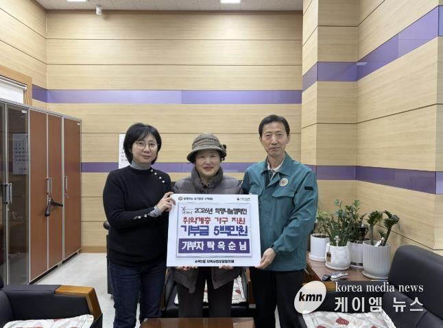 (케이엠뉴스) 구리시 수택3동 행정복지센터는 지난 12일, 한부모 가정 아동 등 관내 취약계층을 돕기 위해 개인기부자 탁옥순 씨로부터 사랑의 후원금 500만 원을 전달받았다고 밝혔다.