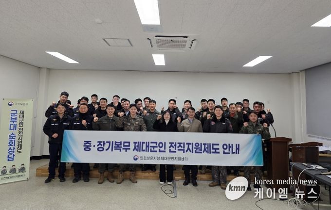 (케이엠뉴스) 국가보훈부 인천보훈지청 제대군인지원센터(센터장 서경민)는 1월 13일 육군 수도군단 제1019부대 5년 이상 복무한 중장기복무 전역예정군인을 대상으로 ‘제대군인 전직지원 사업 홍보를 위한 찾아가는 군부대 순회교육’을 실시 했다. ‘찾아가는 군부대 순회교육’은 제대군인지원센터가 각 군부대와의 협조를 통해 교육 접근성과 참여율을 높이기 위해 군부대 내에서 직접 제대예정군인 전직지원제도와 국가보훈제도를 소개하는 프로그램이다.