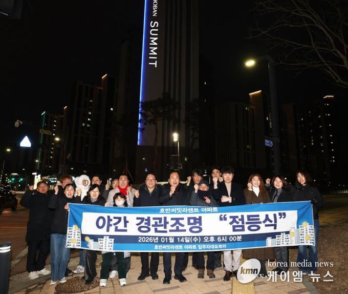 이번 점등식은 기존 옥탑부 조명을 보완해 새롭게 설치한 ‘라인 경관조명’의 본격적인 가동을 알리는 행사로, 아파트 외벽을 따라 조성된 경관조명이 점등되며 단지 전반의 야간 경관이 한층 밝고 쾌적하게 개선됐다.