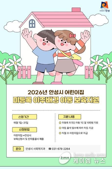(케이엠뉴스) 안성시는 2026년부터 어린이집에 다니는 미등록 외국인(이주배경) 영유아에게 월 10만원의 보육지원금을 지원한다고 밝혔다.