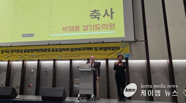 (케이엠뉴스) 경기도의회 보건복지위원회 박재용 의원(더불어민주당, 비례)은 16일, 수원컨벤션센터에서 열린 ‘2025년 경기도 권리중심 중증장애인맞춤형 공공일자리 성과보고대회 및 취업박람회’에 참석해 축사를 전하고, 중증장애인의 노동권 보장과 권리중심 공공일자리 정책의 지속적인 발전 필요성을 강조했다.