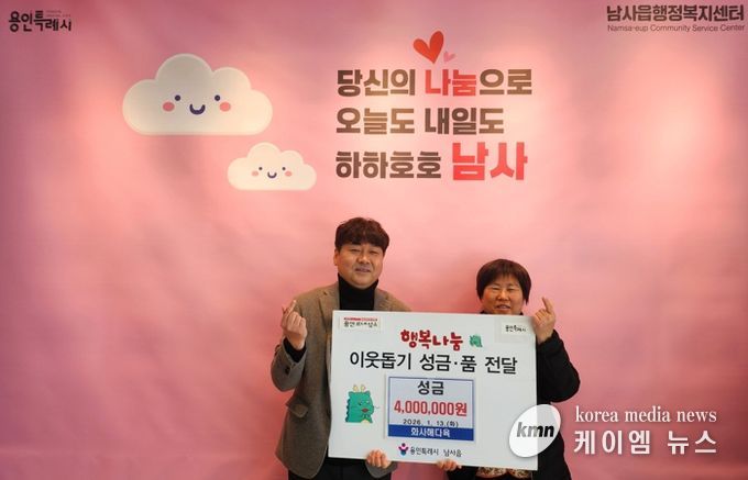 처인구 남사읍은 13일 화사해다육에서 성금 400만원을 기탁했다고 밝혔다.