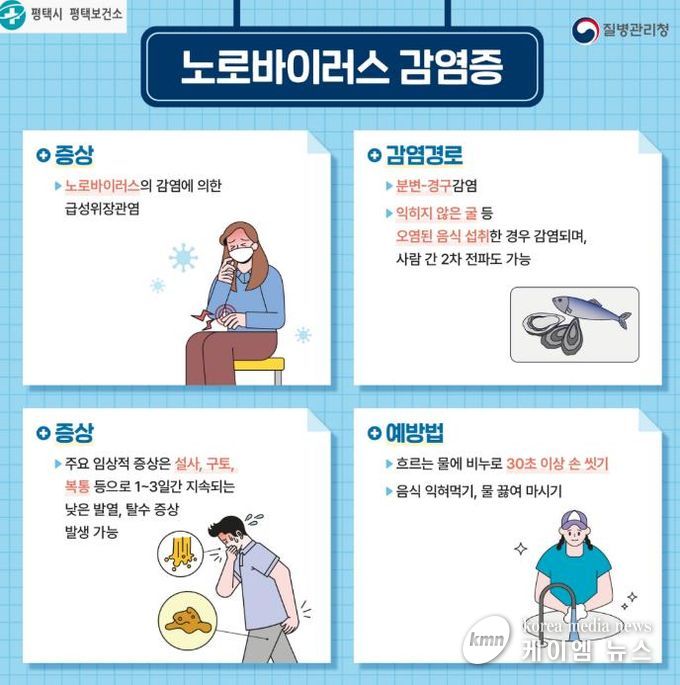 (케이엠뉴스) 평택시는 최근 영유아를 중심으로 노로바이러스 감염증 환자 발생이 증가함에 따라, 영유아 이용 시설(어린이집, 유치원, 키즈카페 등)을 대상으로 개인위생 관리 강화와 예방수칙 준수를 당부했다.