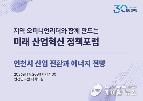 (케이엠뉴스) 인천연구원은 2026년 1월 20일 오후 2시, 연구원 대회의실에서 '2026년 제1차 인천 미래 산업혁신 정책포럼'을 개최한다.