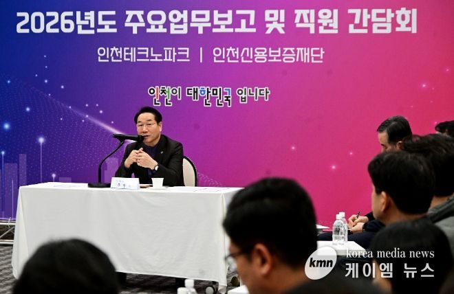 (케이엠뉴스) 인천광역시는 1월 19일, 시 산하 출자·출연기관 현장 방문의 일환으로 인천테크노파크와 인천신용보증재단을 방문해 2026년 주요 업무계획을 보고 받고 직원들과 소통하는 간담회를 가졌다.