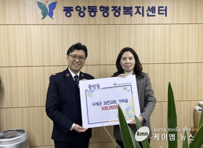 (케이엠뉴스) 과천시 중앙동은 지난 19일 구세군 과천교회로부터 지역사회 취약계층을 위한 기부금 50만 원을 전달받았다고 밝혔다.