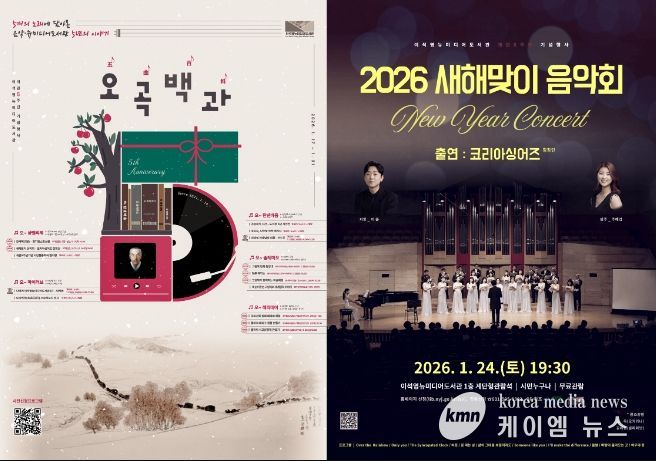 대표 프로그램으로는 오는 24일 오후 7시 30분, 도서관 1층 계단형 관람석에서 열리는 ‘2026 새해맞이 음악회’가 있다. 음악회에는 코리아싱어즈 합창단, 오카리나 연주자 김욱, 클라리네티스트 김예원 등이 출연해 새해의 희망을 전하는 공연을 선보인다.