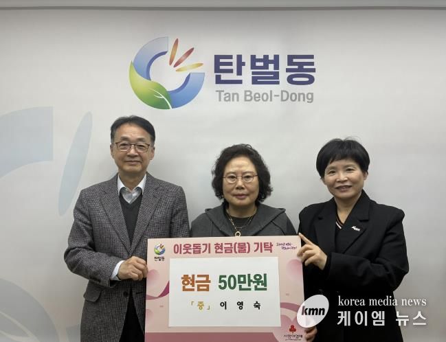 (케이엠뉴스) 이영숙 탄벌8통장은 21일 광주시 탄벌동 행정복지센터를 방문해 취약계층 지원을 위한 성금 50만 원을 기탁했다.