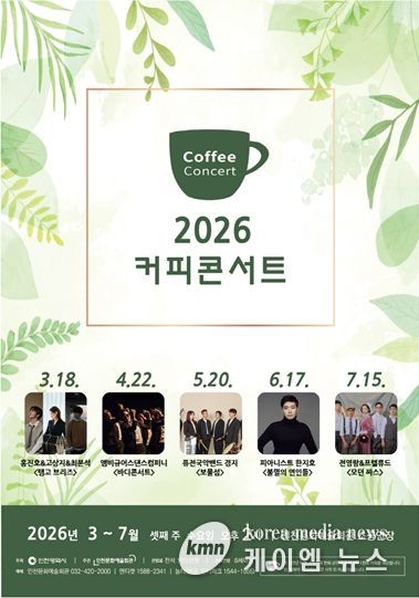 (케이엠뉴스) 인천문화예술회관(관장 홍순미)이 간판 브랜드 공연 〈커피콘서트'의 2026년 상반기 출연진을 공개한다.