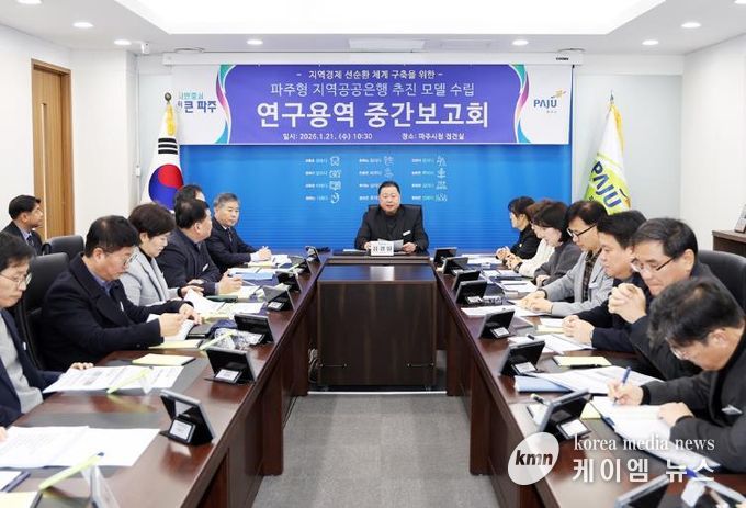 (케이엠뉴스) 파주시는 지난 21일 ‘파주형 지역공공은행 추진 모델 수립 연구용역’중간보고회를 개최하고, 연구 진행 현황과 함께 향후 지역공공은행 추진을 위한 검토 결과를 공유했다.