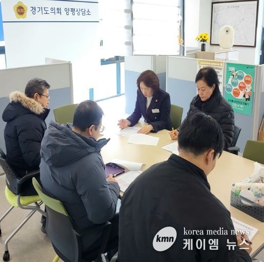 (케이엠뉴스) 경기도의회 박명숙 의원(국민의 힘, 양평 1)과 이혜원 의원 (국민의힘, 양평 2) 은 22일 양평군청 기획 예산담당관 관계자로부터 ‘경기 생활 쏙(SOC) 환원 사업’ 공모 추진 계획을 보고받고 사업 방향에 대해 함께 논의하는 시간을 가졌다.