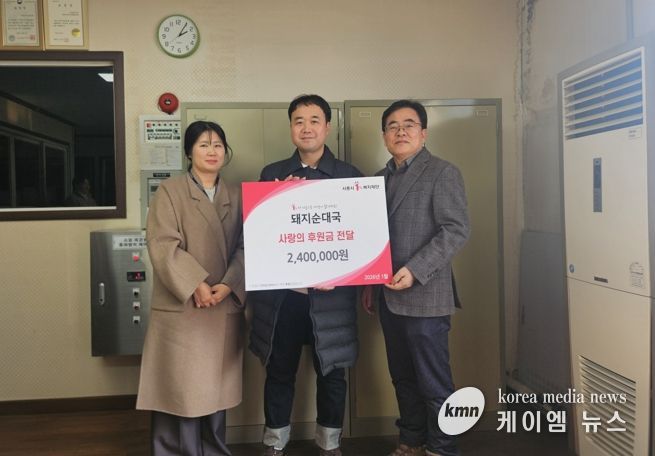 (케이엠뉴스) 시흥시 신천동 행정복지센터는 지난 1월 23일 지역 나눔 문화를 실천하는 관내 음식점인 돼지순대국으로부터 후원금 240만 원을 전달받았다.