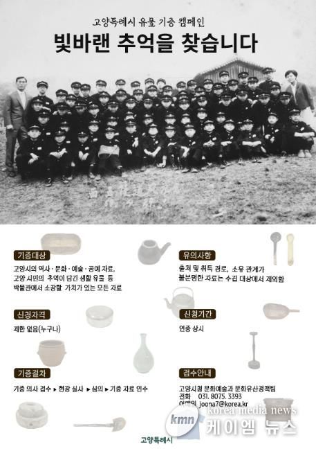 시 관계자는 “박물관은 시민의 기억과 참여로 완성되는 공간”이라며 “이번 유물 기증 운동이 시민들의 자발적 참여로 고양시의 역사와 정체성을 함께 기록하고 공유하는 계기가 되길 바란다”라고 밝혔다.