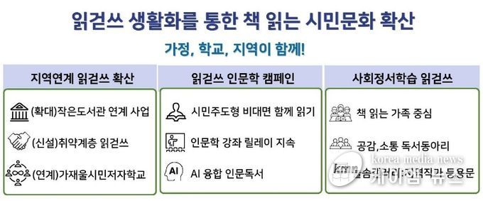 이와 함께 평생학습 및 개별 사업에 분산된 독서 취약계층 지원사업을 정비해, 독서교육 기반의 취약계층 맞춤형 교육을 신설할 예정이다.