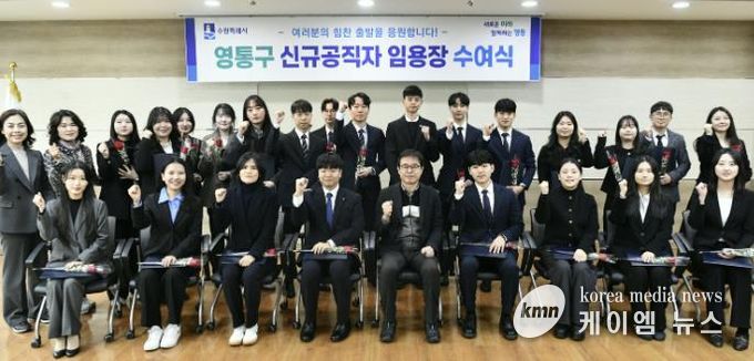 영통구는 신규 공직자들에게 임용장과 함께 꽃을 전달하며 공직 입문을 축하하고, 지역사회 발전을 위해 성실하고 책임감 있게 근무해 줄 것을 당부했다.