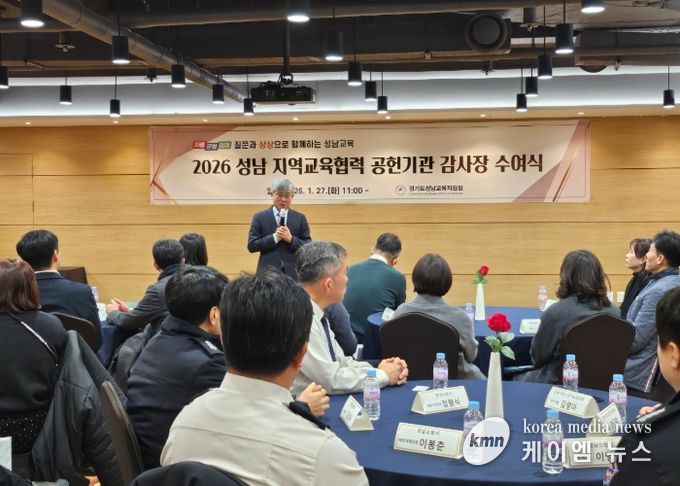 (케이엠뉴스) 경기도성남교육지원청은 1월 27일 스카이파크 호텔에서 '성남 지역교육협력 공헌기관 감사장 수여식'을 개최하여 성남교육 발전을 위해 협력해 온 지역교육협력기관 22곳에 감사의 뜻을 전했다.