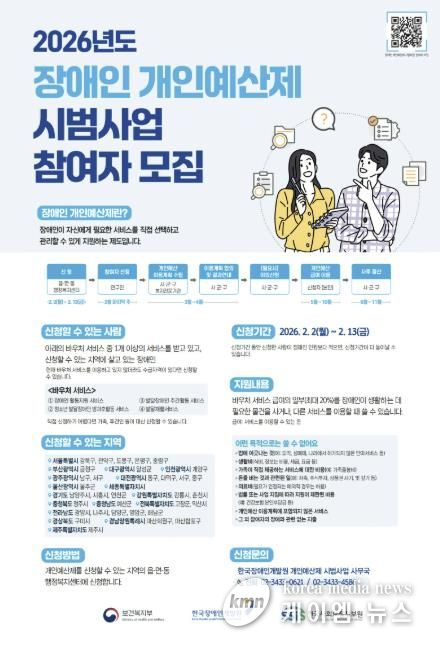 (케이엠뉴스) 시흥시는 2월 2일부터 13일까지 ‘2026년 장애인 개인 예산제 시범사업’ 참여자를 모집한다.