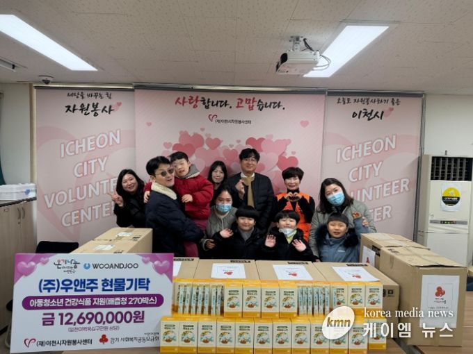 (케이엠뉴스) 이천시자원봉사센터는 1월 30일 센터 다목적실에서 ㈜우앤주(대표 송우)의 지원으로 현물 기탁식을 진행했다.