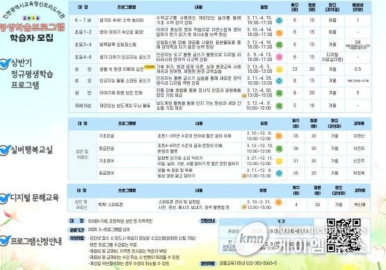 (케이엠뉴스) 인천광역시교육청신트리도서관은 지역 주민의 생애주기별 학습 기회 제공을 위해 2026년 상반기 평생학습프로그램 학습자를 모집한다.