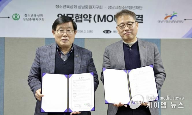 (케이엠뉴스) 성남시청소년청년재단은 2월 3일 청소년육성회 성남중원지구회와 지역 청소년의 건강한 성장과 복지 증진을 위한 업무협약을 체결했다.