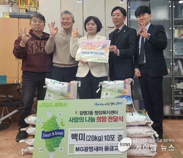 (케이엠뉴스) MG광명새마을금고는 4일 광명3동 지역사회보장협의체에 ‘사랑의 좀도리 운동’의 일환으로 쌀(20kg) 10포를 전달했다.