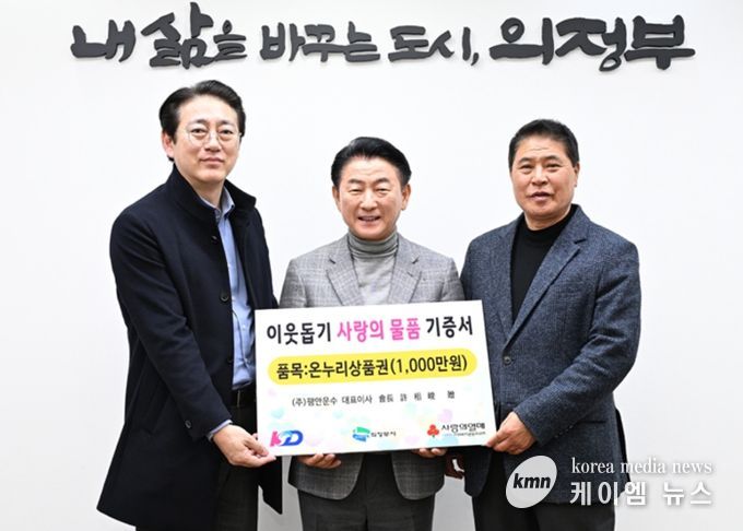 (케이엠뉴스) 의정부시는 2월 4일 KD운송그룹이 설 명절을 앞두고 어려운 이웃을 돕기 위해 1천만 원 상당의 온누리상품권을 기탁했다고 밝혔다.