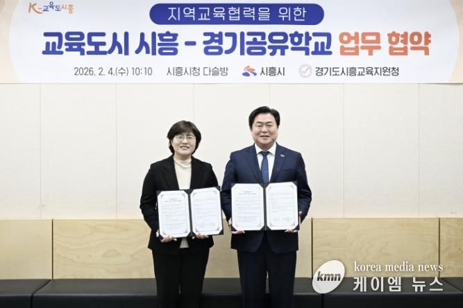 (케이엠뉴스) 시흥시는 지난 2월 4일 시청 다슬방에서 시흥교육지원청과 함께 ‘지역교육협력을 위한 교육도시 시흥-경기공유학교’ 업무협약을 맺었다.