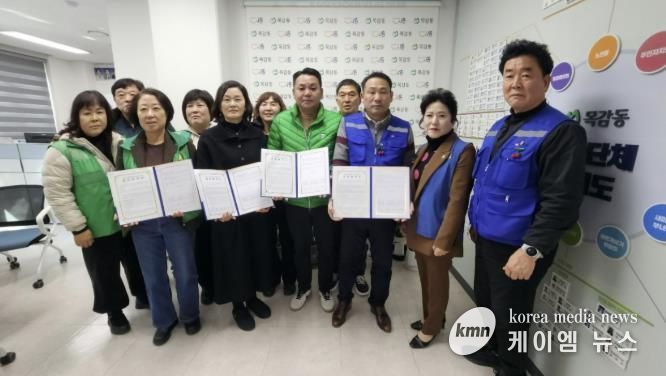 (케이엠뉴스) 시흥시 목감동 행정복지센터는 지난 2월 3일 취약계층의 복지증진과 복지 사각지대 해소를 위해 동 행정복지센터 회의실에서 목감동 새마을남녀협의회 및 시흥시 처음처럼 봉사회 등 관계단체와 업무협약을 맺었다.