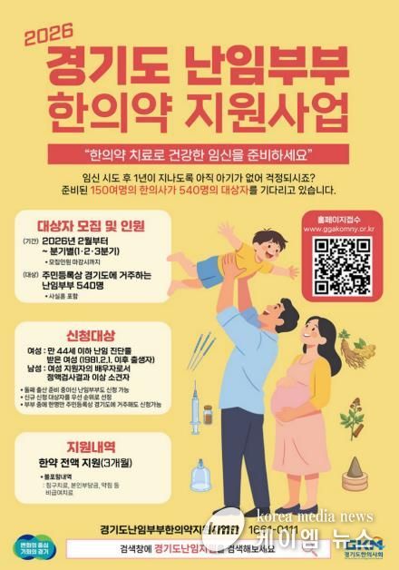 이번 사업은 주민등록상 경기도에 거주하는 난임부부(사실혼 포함)를 대상으로 하며, 부부 중 한 명만 경기도에 거주해도 신청이 가능하다. 선정된 대상자에게는 체질과 건강 상태를 고려한 한약을 약 3개월간 무료로 지원하고, 치료 전후 혈액검사를 통해 한방치료의 안전성을 확보할 예정이다.