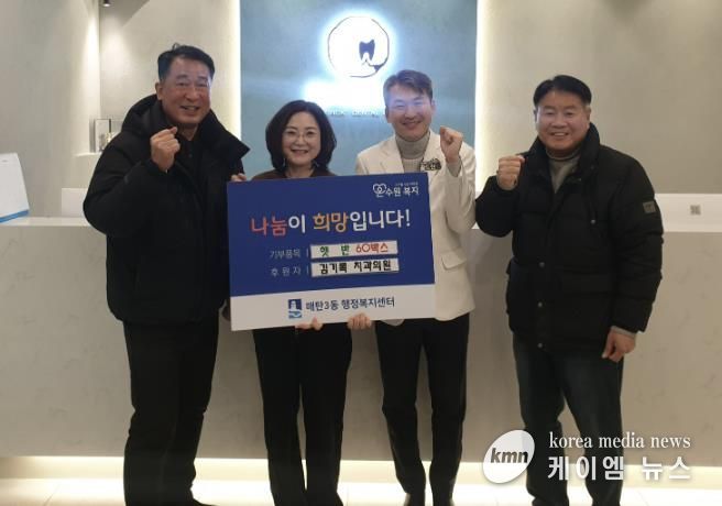 (케이엠뉴스) 수원시 영통구 매탄3동 행정복지센터는 지난 4일 김기록치과가 다가오는 설 명절을 맞아 관내 어려운 이웃들을 위해 햇반 60박스를 매탄3동에 기탁했다고 밝혔다.
