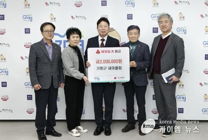 (케이엠뉴스) 가평군새마을회는 4일 가평군청을 방문해 불우이웃돕기 성금 200만 원을 기탁했다.