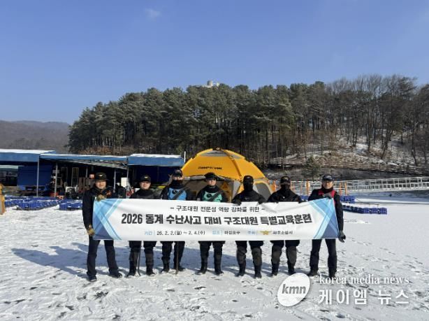 (케이엠뉴스) 파주소방서는 2월 2일부터 4일까지 3일간 마장호수 일원에서 겨울철 수난사고에 대비한 ‘동계 수난구조 특별교육훈련’을 실시했다. 이번 훈련은 혹한기 수난 현장의 특수성과 위험성을 고려해 구조대원의 신속한 대응과 구조 전문성 강화를 목표로 진행됐다.