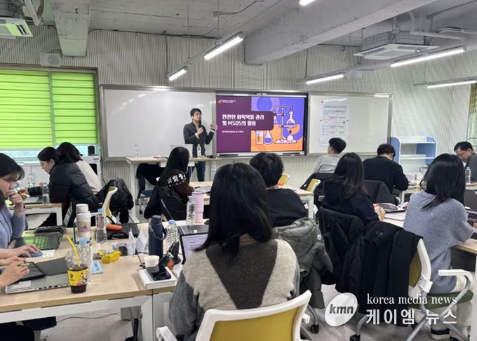 5일 연수의 주요 내용은 ▲과학실험실 안전관리의 실제 ▲안전한 화학약품 관리 및 MSDS 활용 ▲사례로 알아보는 과학실험실 안전 등 학교 현장에서 바로 적용 가능한 실습·사례 중심 프로그램이 운영됐다.