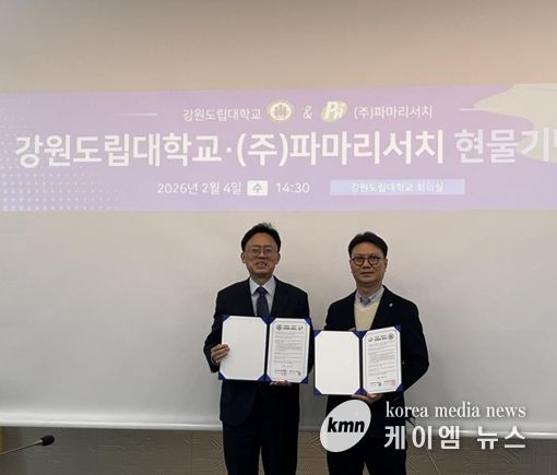 강원도립대학교는 2월 4일 대학 본부에서 파마리서치와 ‘산학협력 업무협약 및 현물 기탁식’을 개최했다고 밝혔다.