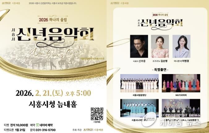 (케이엠뉴스) 시흥시가 지원하고 (사)한국예술문화단체총연합회 시흥지회에서 주관하는 ‘2026 시흥시 신년음악회- 하나의 울림’이 오는 2월 21일 오후 5시, 시청 늠내홀에서 개최된다.