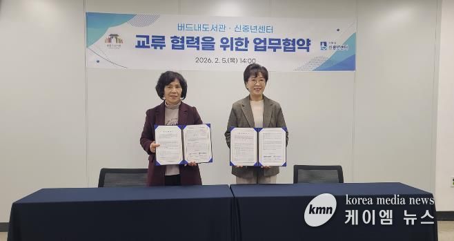 두 기관은 5일 버드내도서관에서 ‘신중년 맞춤형 라이프 솔루션 제공을 위한 업무협약’을 체결하고, 협력을 약속했다.