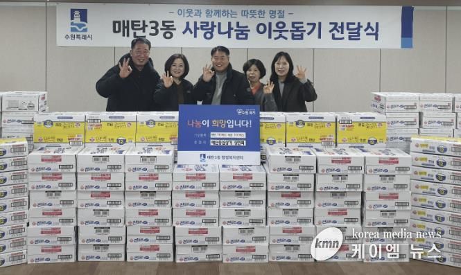 정희경 매탄중심상가상인회장은 “설 명절만큼은 우리 주변의 어려운 이웃들이 소외되지 않고 따뜻한 정을 느끼며 든든하게 보내시길 바라는 마음으로 회원들과 정성을 모았다”며, “앞으로도 지역 상인들이 힘을 합쳐 주변을 살피고 나눔을 실천하는 활동에 적극 앞장서겠다”고 전했다.