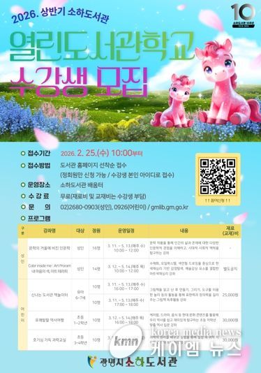 (케이엠뉴스) 광명시 소하도서관이 ‘2026년 상반기 열린도서관학교’ 수강생을 모집한다.