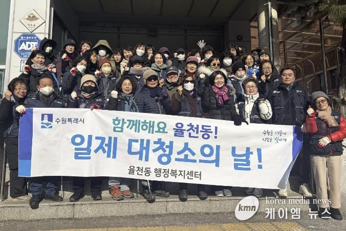 (케이엠뉴스) 수원시 장안구 율천동 행정복지센터는 지난 6일, 민족 최대의 명절인 설 연휴를 대비하여 통장협의회 및 직원 등 60여 명이 함께 참여하여 설맞이 일제 대청소를 실시했다.