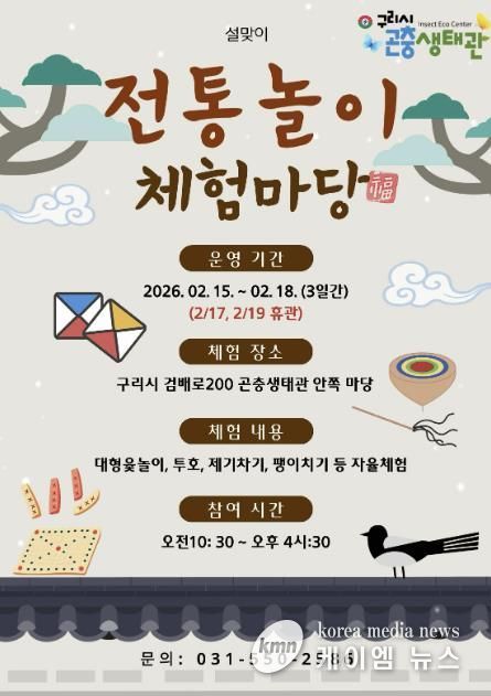 (케이엠뉴스) 구리시는 민족 최대의 명절 설을 맞아 오는 2월 15일부터 18일까지 구리시 곤충생태관에서 ‘2026 설맞이 전통 놀이 체험 마당’을 운영한다고 밝혔다.
