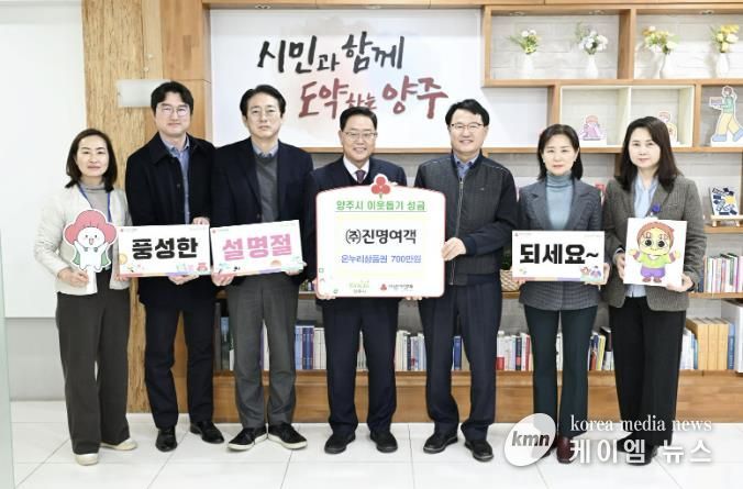 (케이엠뉴스) 양주시는 지난 6일 (주)진명여객이 관내 취약계층을 위해 온누리상품권 700매(700만 원 상당)를 기탁했다고 밝혔다.