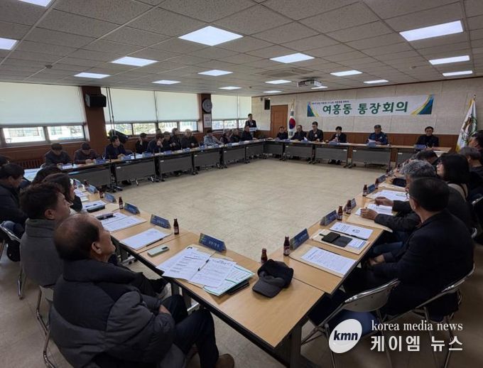 (케이엠뉴스) 여주시 여흥동은 6일 오전, 행정복지센터 2층 회의실에서 제10대 김광덕 부시장과 함께하는 2월 1차 통장회의를 개최했다. 회의에는 김광덕 부시장, 김영완 여흥동장, 정지남 홍문지구대장, 이병길 여주농협조합장 및 33개 마을 통장이 참석했다.