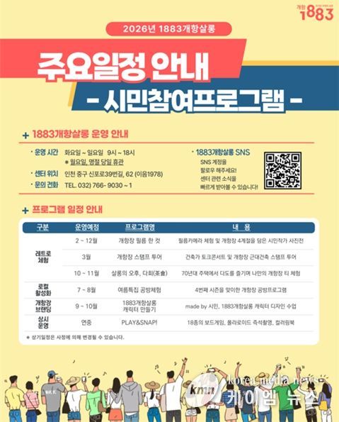 이 밖에도 연중 운영되는 시민참여 프로그램과 월별 세부 일정은 ‘2026년 1883개항살롱 주요 일정 안내표’를 통해 한눈에 확인할 수 있다.