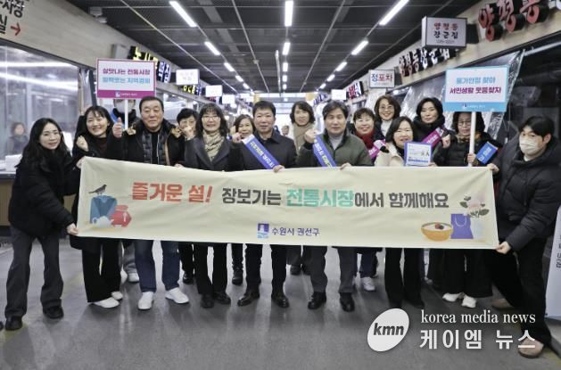 (케이엠뉴스) 수원시 권선구는 지난 9일 설 명절을 맞아 권선종합시장을 찾아 지역경제를 살리기 위한 ‘전통시장 장보기 캠페인’을 실시했다.
