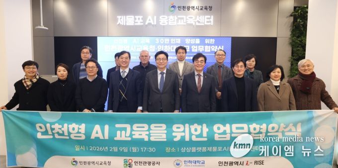 (케이엠뉴스) 인천광역시교육청은 지난 9일 상상플랫폼에서 인하대학교와 ‘인천형 AI 교육을 위한’ 업무협약 및 ‘인천형 인공지능 개방형 캠퍼스(OPEN 캠퍼스) 구축·운영을 위한’ 부속 협약을 체결했다.