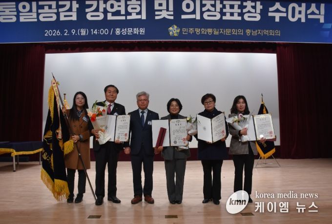 (케이엠뉴스) 민주평화통일자문회의 예산군협의회(회장 진명희)가 지난 9일 홍성문화원에서 열린 유공자문위원 의장(대통령)표창 수여식에서 현석운 수석부회장, 이정순 자문위원, 김현주 팀장(공무원), 협의회 단체표창을 각각 수상했다고 밝혔다.