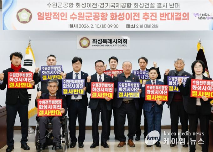 (케이엠뉴스) 화성특례시의회 수원 군공항 화성시 이전 반대 특별위원회는 10일 대회의실에서 수원시의 『수원군공항 이전 국가전략사업 추진』 및 『범정부 수원군공항 이전 TF 구성』 건의에 대한 반대 규탄 결의문을 발표했다.