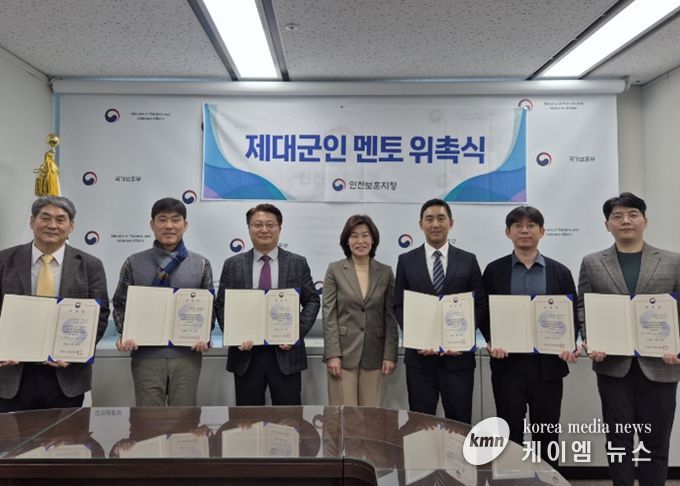(케이엠뉴스) 국가보훈부 인천보훈지청 제대군인지원센터는 2월 10일 정부인천지방합동청사에서 먼저 사회에 진출하여 성공한 제대군인을 분야별로 멘토로 선정하는 “2026년 제대군인 멘토 위촉식 및 간담회”를 진행했다.