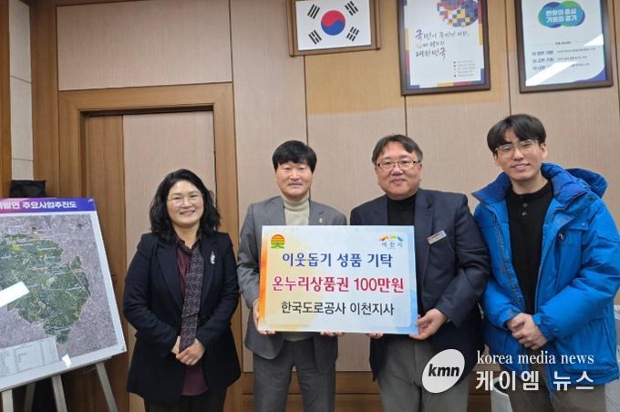 (케이엠뉴스) 한국도로공사 이천지사는 10일 설 명절을 앞두고 관내 취약가구 지원을 위해 100만 원 상당의 온누리상품권을 이천시 대월면 행정복지센터에 기탁했다.